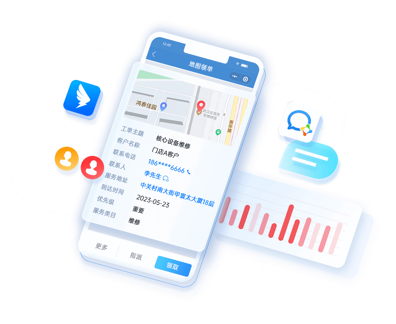 • 按區(qū)域/工單類型/產(chǎn)品類型進(jìn)行地圖派單、手動(dòng)派單和工單池?fù)寙?/li>